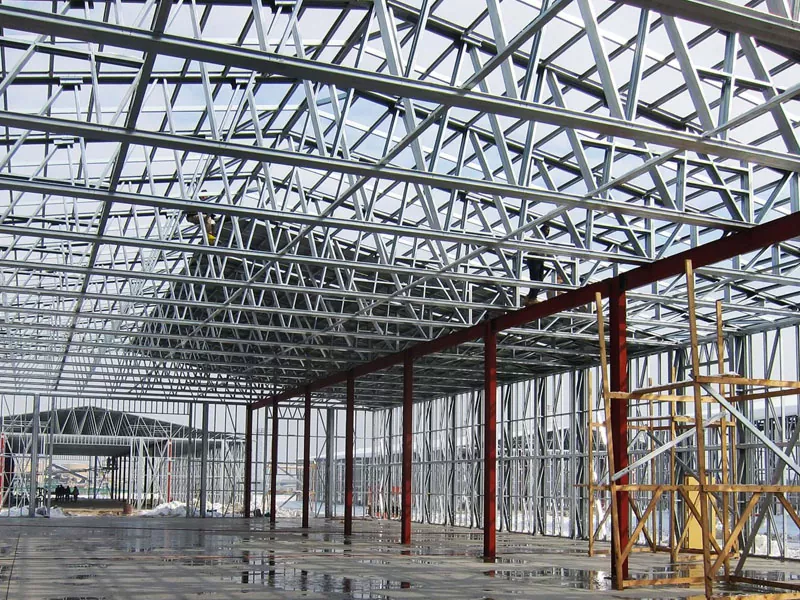 Els components d'acer, inclosos bigues, columnes, claus i embruixades del sostre, es prefabrica en un entorn de fàbrica mitjançant acer d'alta qualitat. Aquests components estan fabricats a especificacions precises, assegurant que s’ajusten amb precisió i segura durant la instal·lació. El procés de prefabricació consisteix en tècniques d’enginyeria i soldadura avançades per garantir la qualitat i la durabilitat de cada peça.